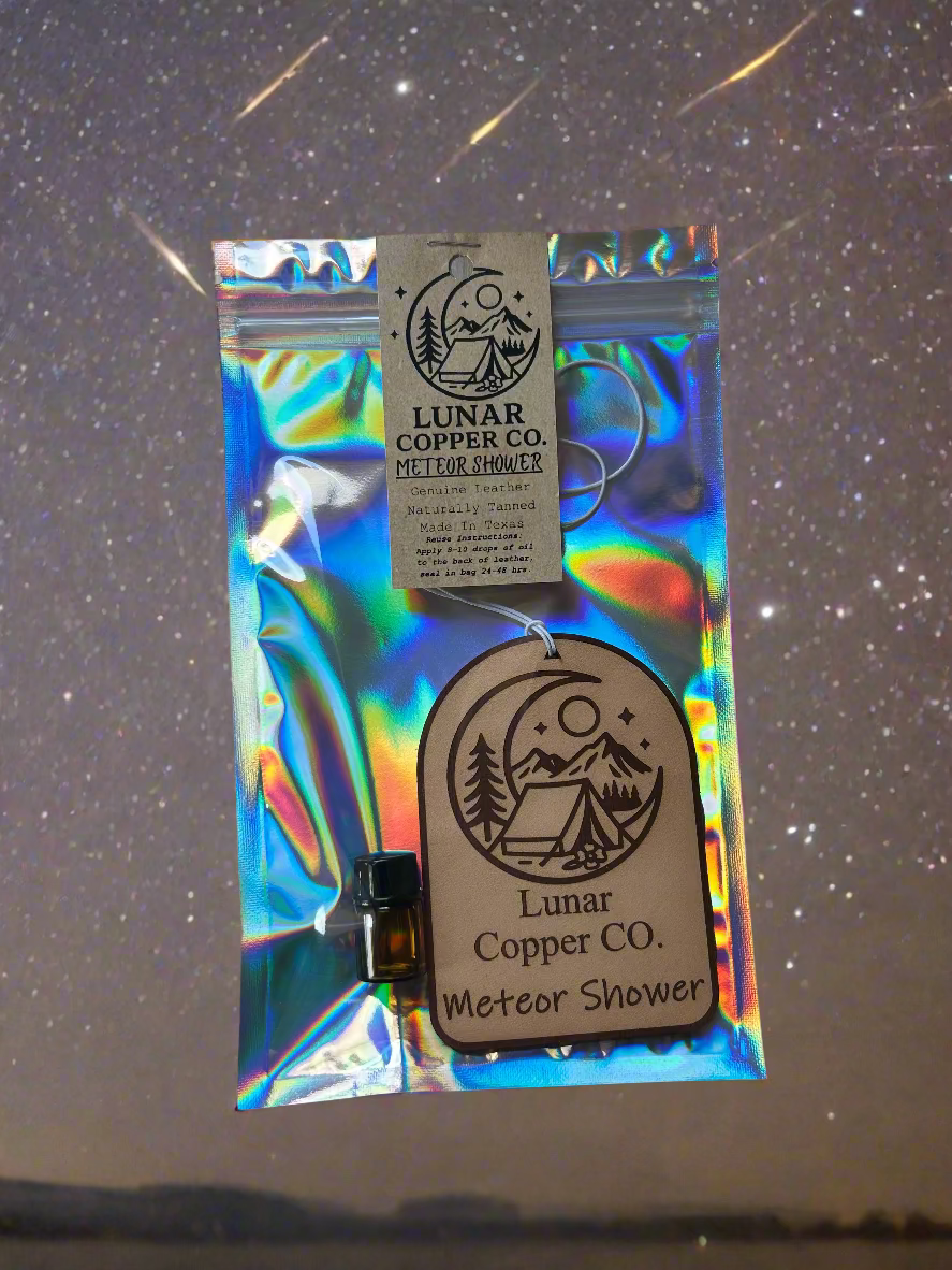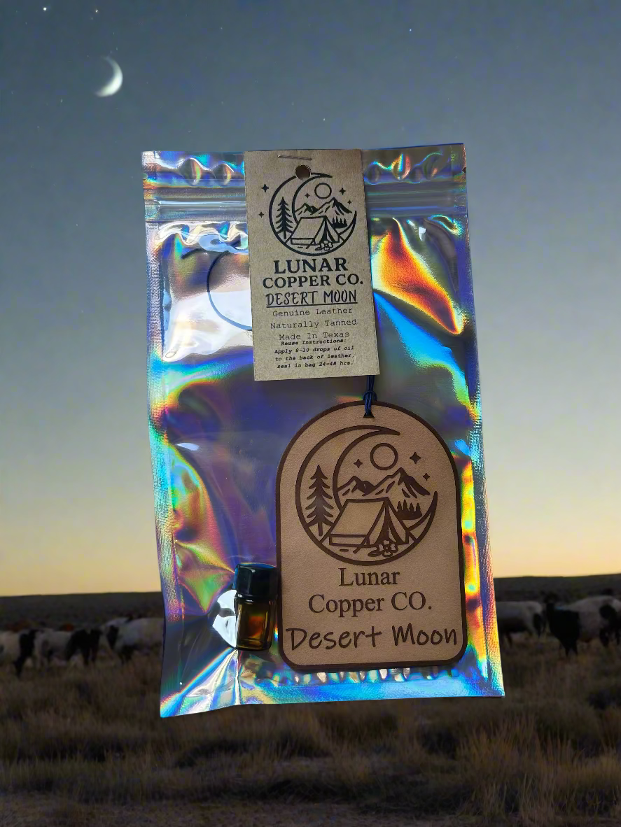 The Lunar Freshie is a 6oz. full-grain leather product, made right here in Texas. It's built to keep things fresh and last a long time. Plus, each Freshie includes a 2ml refill bottle, so it's super easy for any leather lover to keep their favorite scent going.