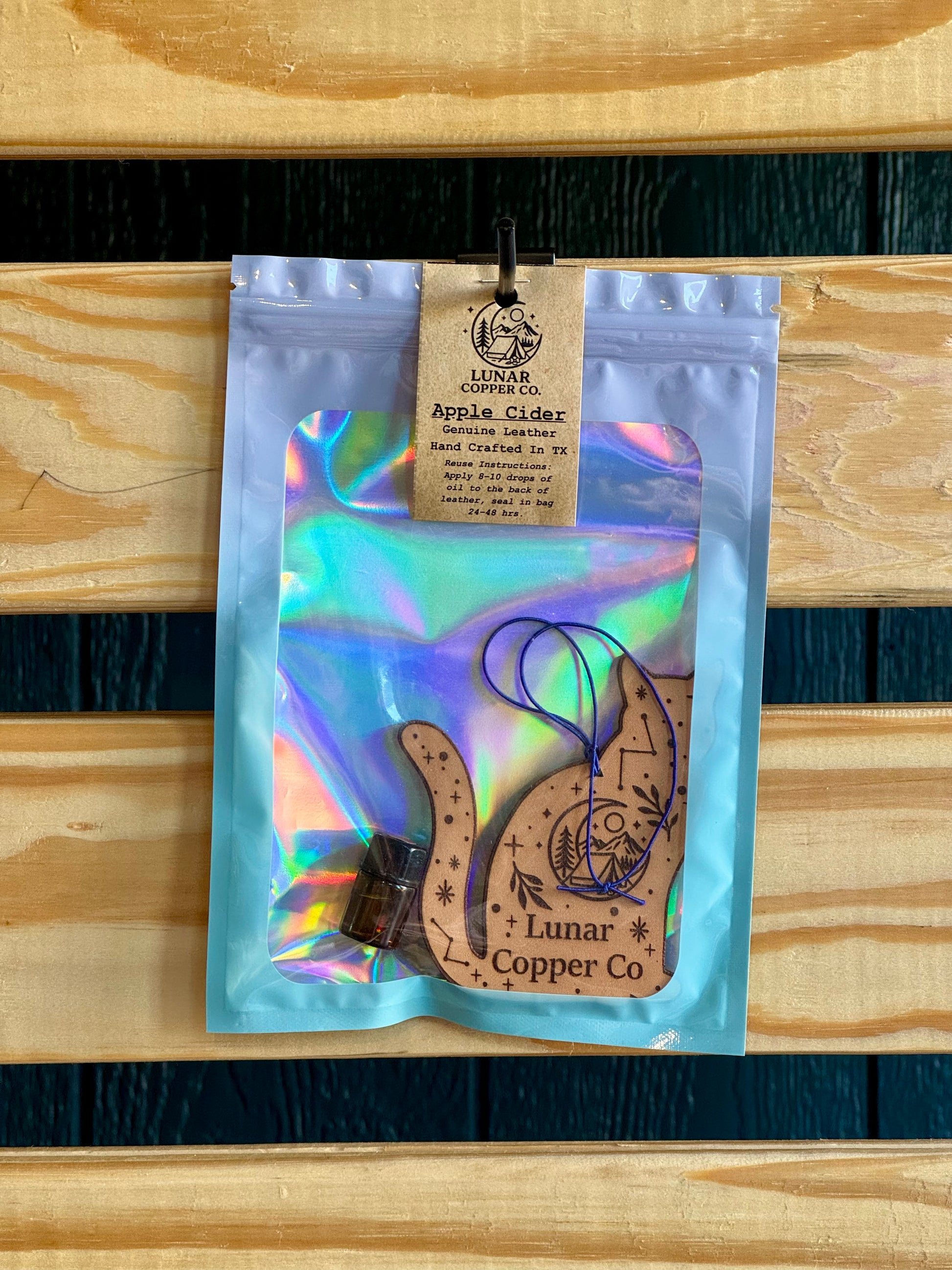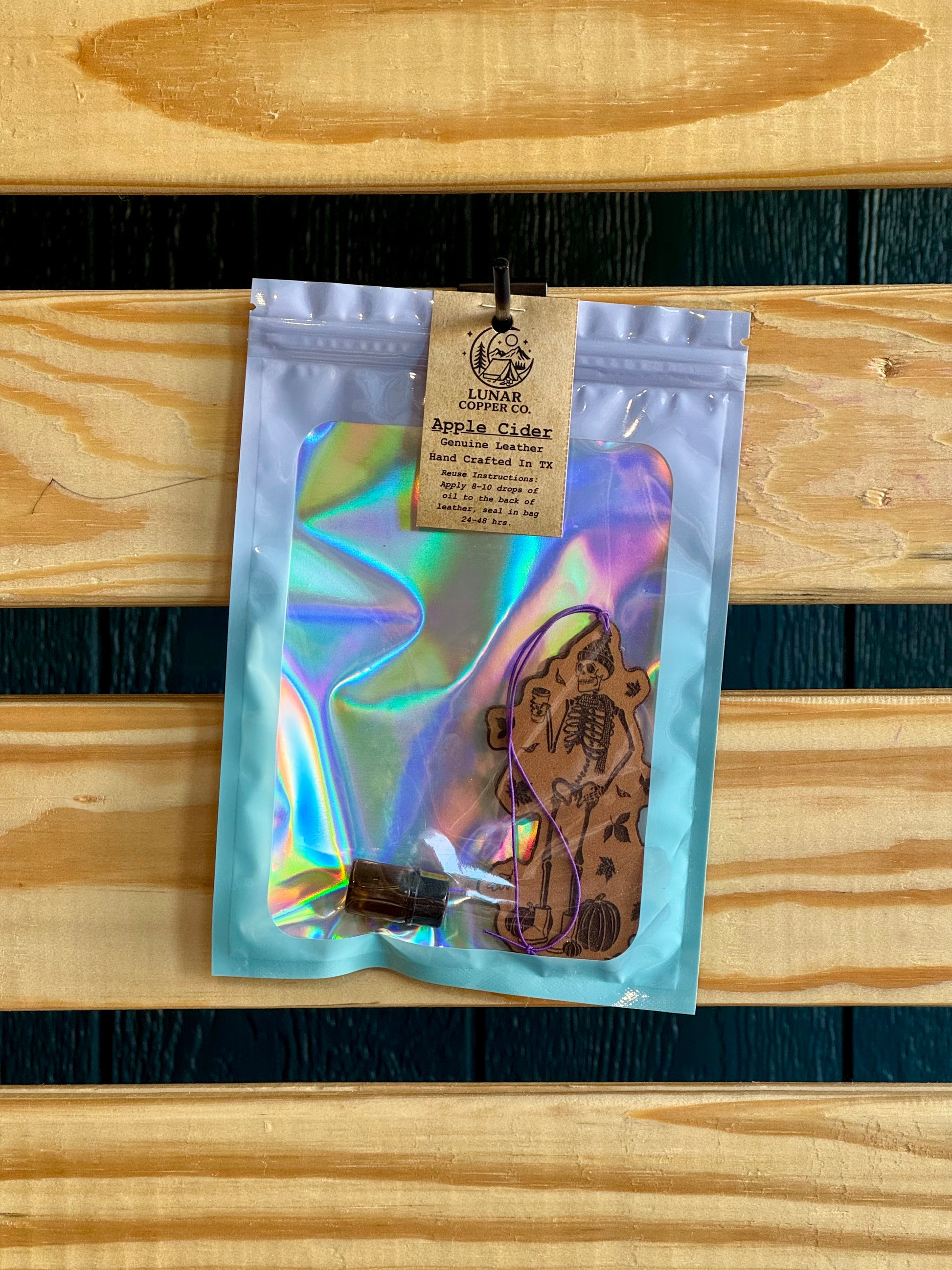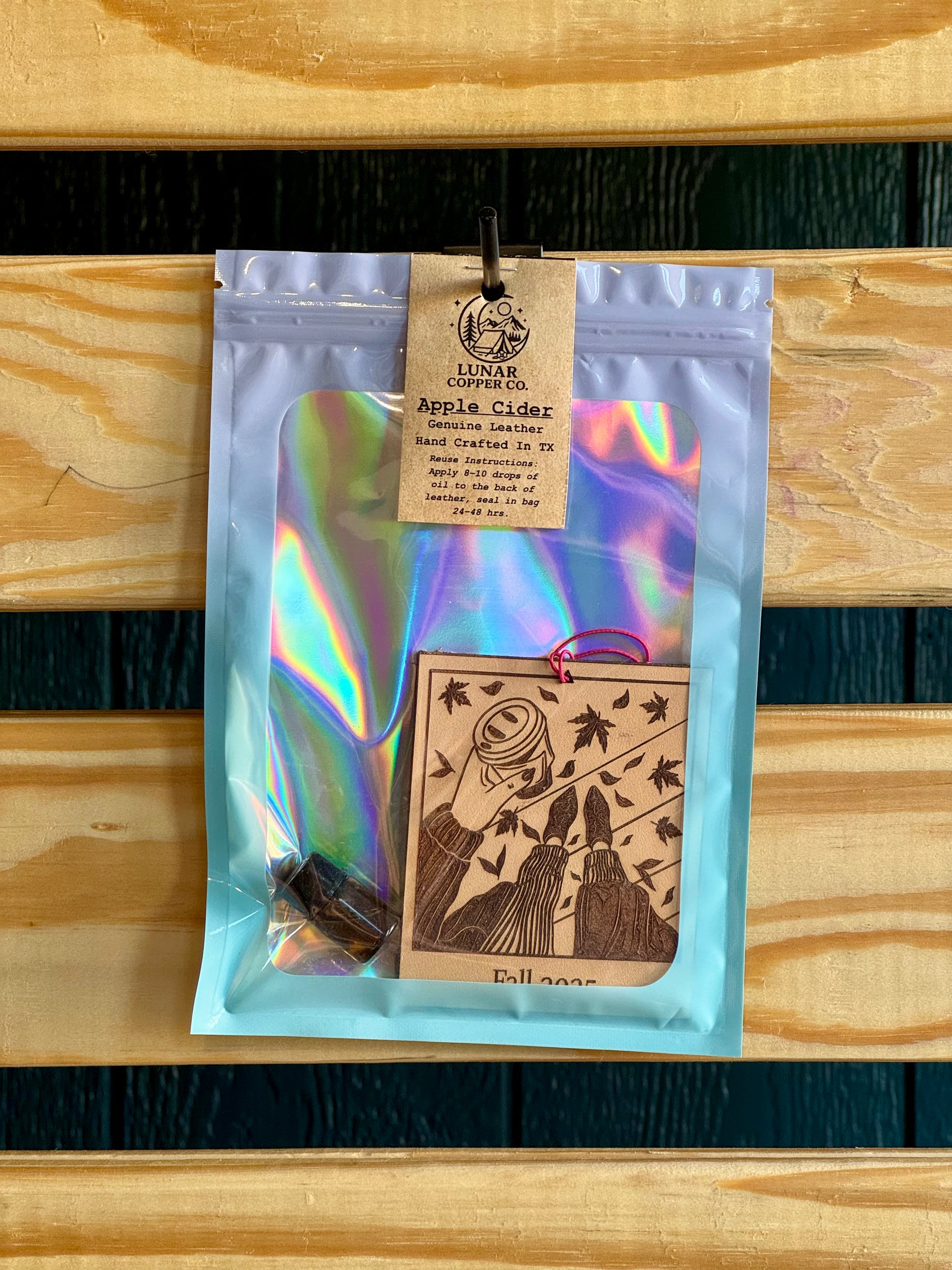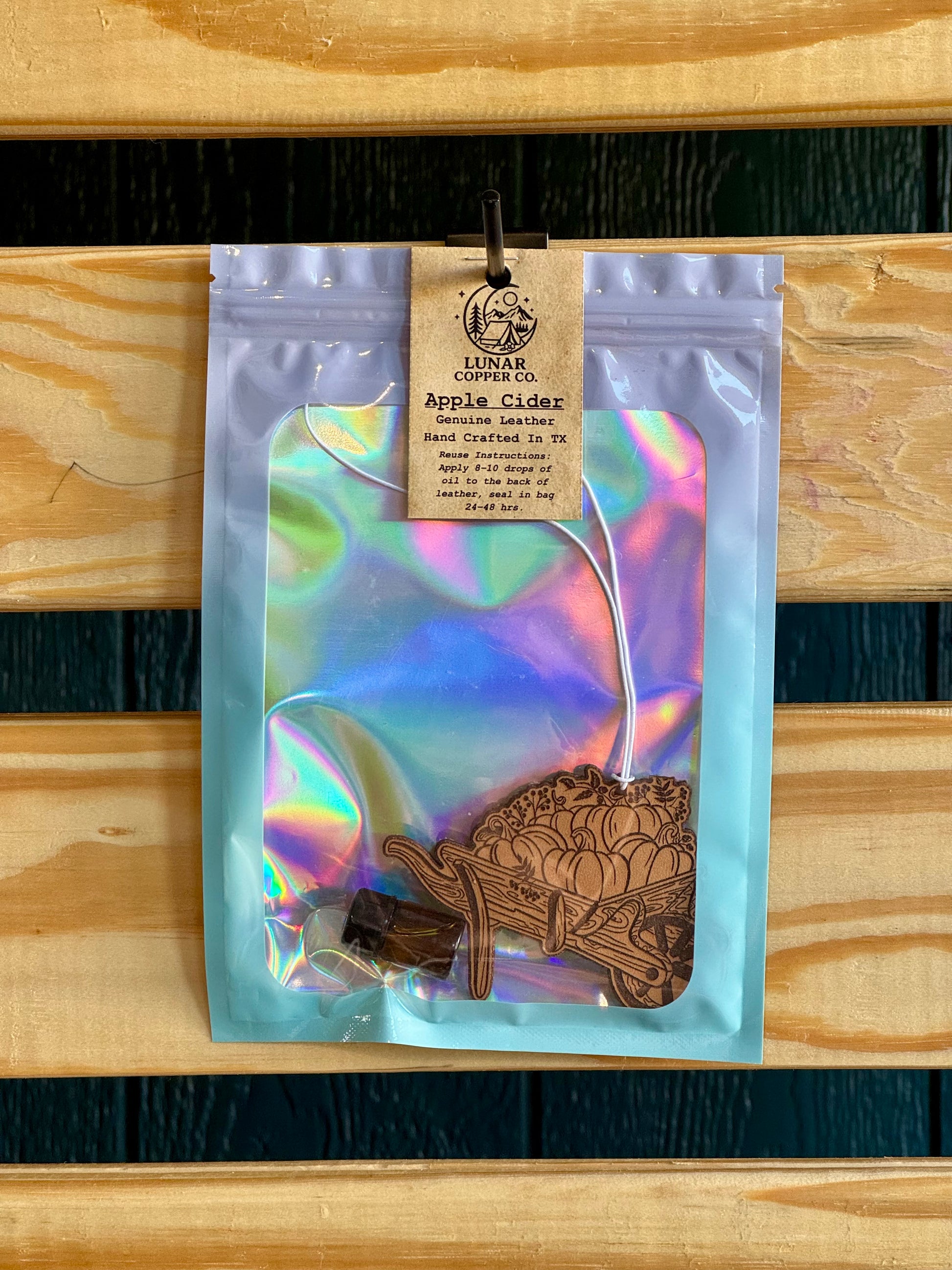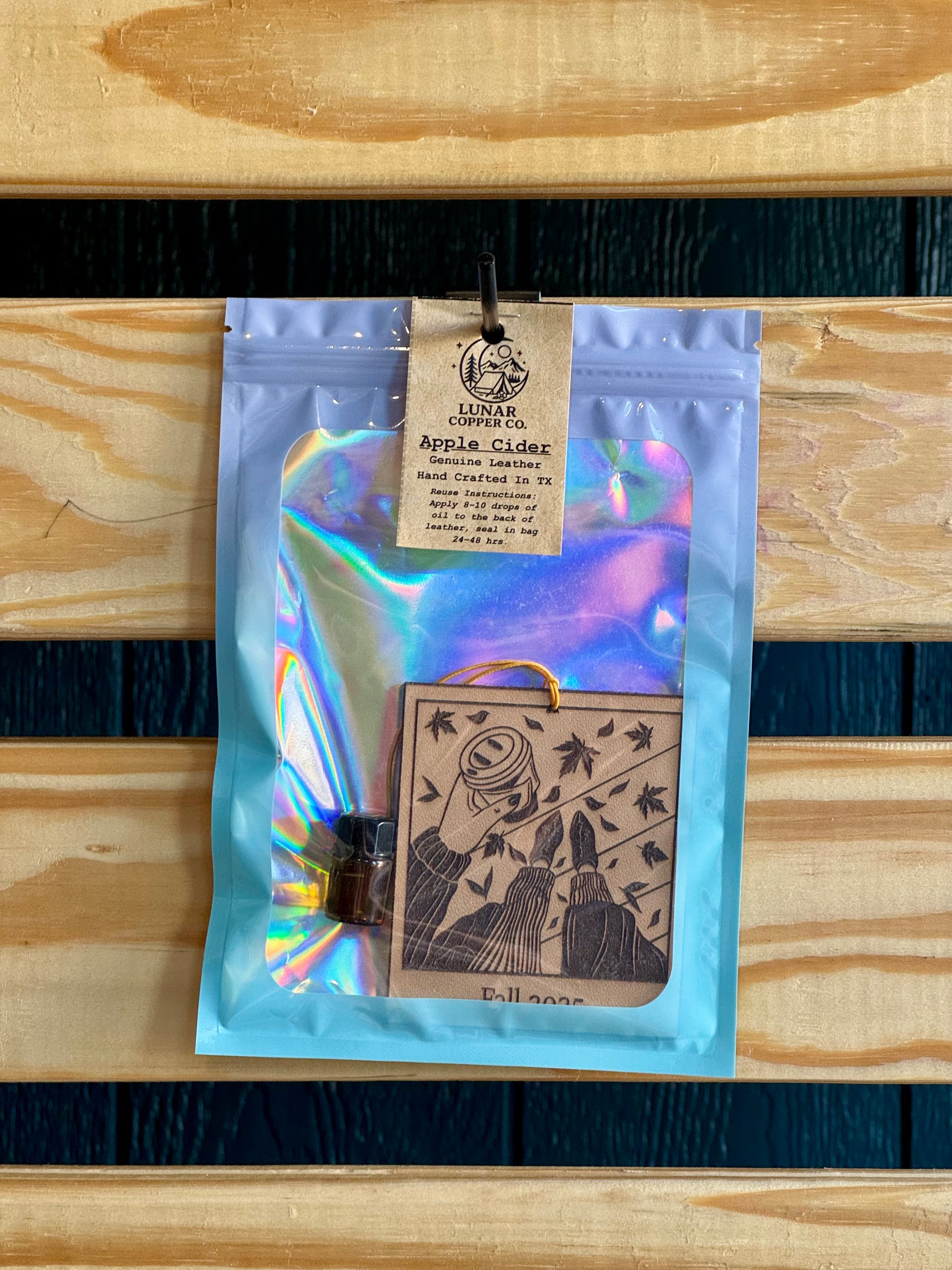 Our Apple Cider Freshie is lovingly handcrafted right here in Texas using quality 6oz full-grain leather that's built to last. The reusable design comes with a 2ml refill bottle, making it easy to refresh your scent whenever you need it. Depending on how strong you like your fragrance, each refill typically keeps your space smelling wonderful for 1-3 months. If you have a specific design or scent preference in mind, we'd love to help just visit our custom shop to share your vision with us.